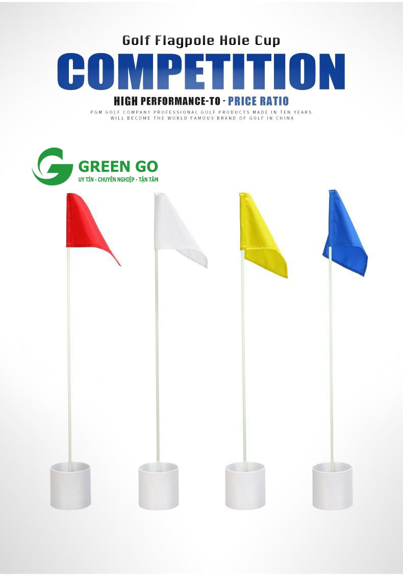 – Cột cờ golf cao 90cm có gắn lá cờ hình tròn và phần chân gắn với đĩa lấy bóng, giúp Golfer lấy bóng khỏi lỗ 1 cách dễ dàng.