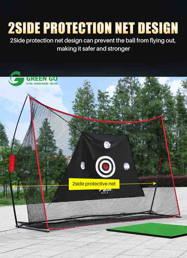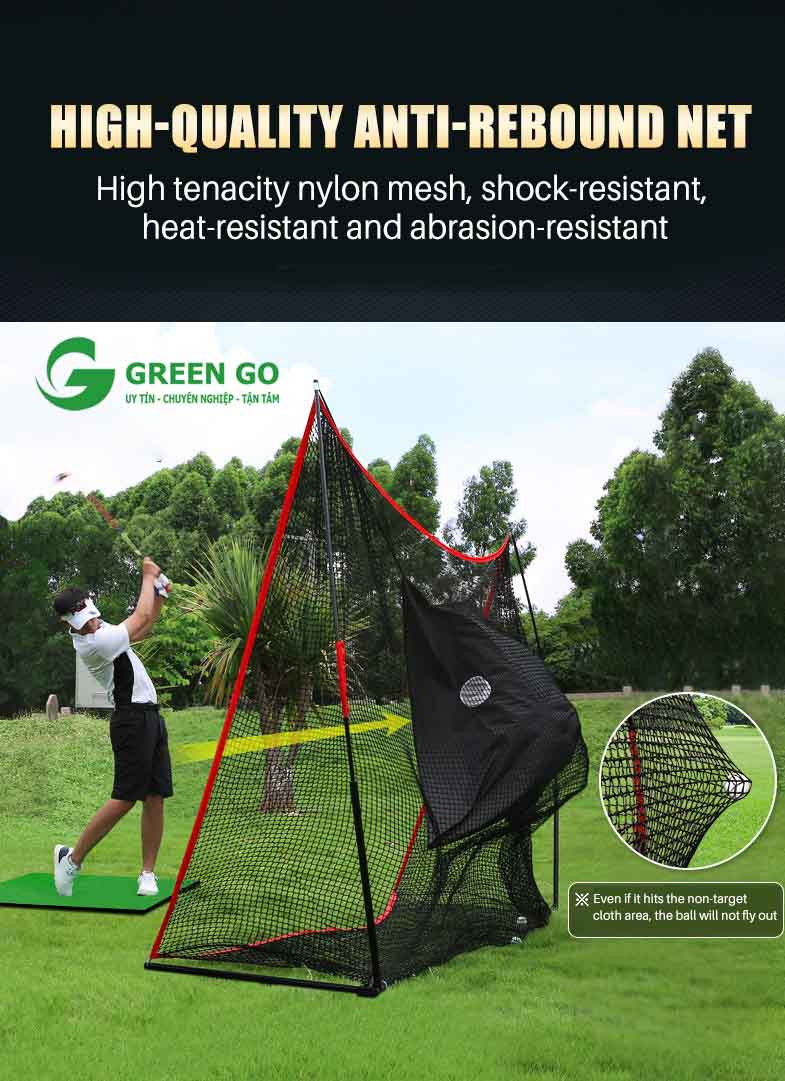 – Khoảng cách rộng của lưới giúp đảm bảo an toàn tối ưu xung quanh khu vực luyện tập của bạn. Tiêu điểm tại điểm trung tâm của vải giúp cho việc luyện tập Swing của bạn dễ dàng hơn.