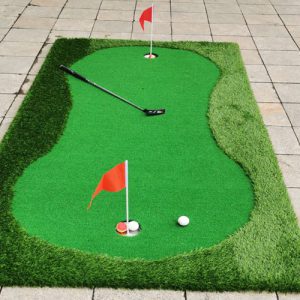 - Trọn bộ gồm: 1 thảm kích thước 1,2m x 2,6m (Chiều rộng x Chiều dài), 3 hố Golf Inox, 3 cờ mục tiêu
