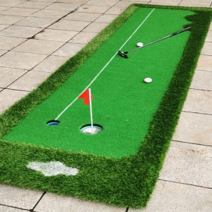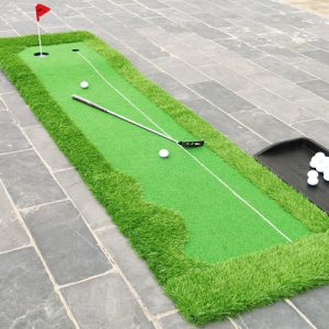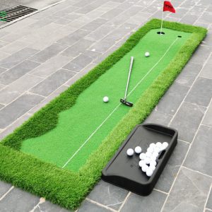 Với thiết kế độ dốc, mô phỏng địa thế như sân Golf làm tăng độ khó của việc luyện tập, nâng cao khả năng của người chơi Golf. 2 hố Golf với kích thước to nhỏ khác nhau, đa dạng bài tập luyện. Hố Golf bằng Inox khi đánh bóng vào mang lại âm thanh vang giòn, cho cảm giác chơi chân thực như trên sân Golf. Một đường kẻ line bóng có sẵn trên thảm giúp những người mới tập chơi thực hiện cú gạt bóng chuẩn xác hơn. Chất liệu cỏ PP cao cấp chống hao mòn, chịu được lực tác động mạnh và dễ vệ sinh. Lớp cỏ dài ngăn chặn không cho bóng lăn ra ngoài trong lúc tập luyện. Đế cao su EVA có tính đàn hồi rất tốt, bền bỉ, tuổi thọ lâu dài. Các Golfer có thể chơi bất cứ nơi nào mình muốn: phòng khách, ban công, văn phòng, ngoài trời, sân vườn,… Nó có thể được gấp lại gọn gàng và lưu trữ mà không chiếm không gian. Bao bì tinh tế, thích hợp để làm quà tặng.