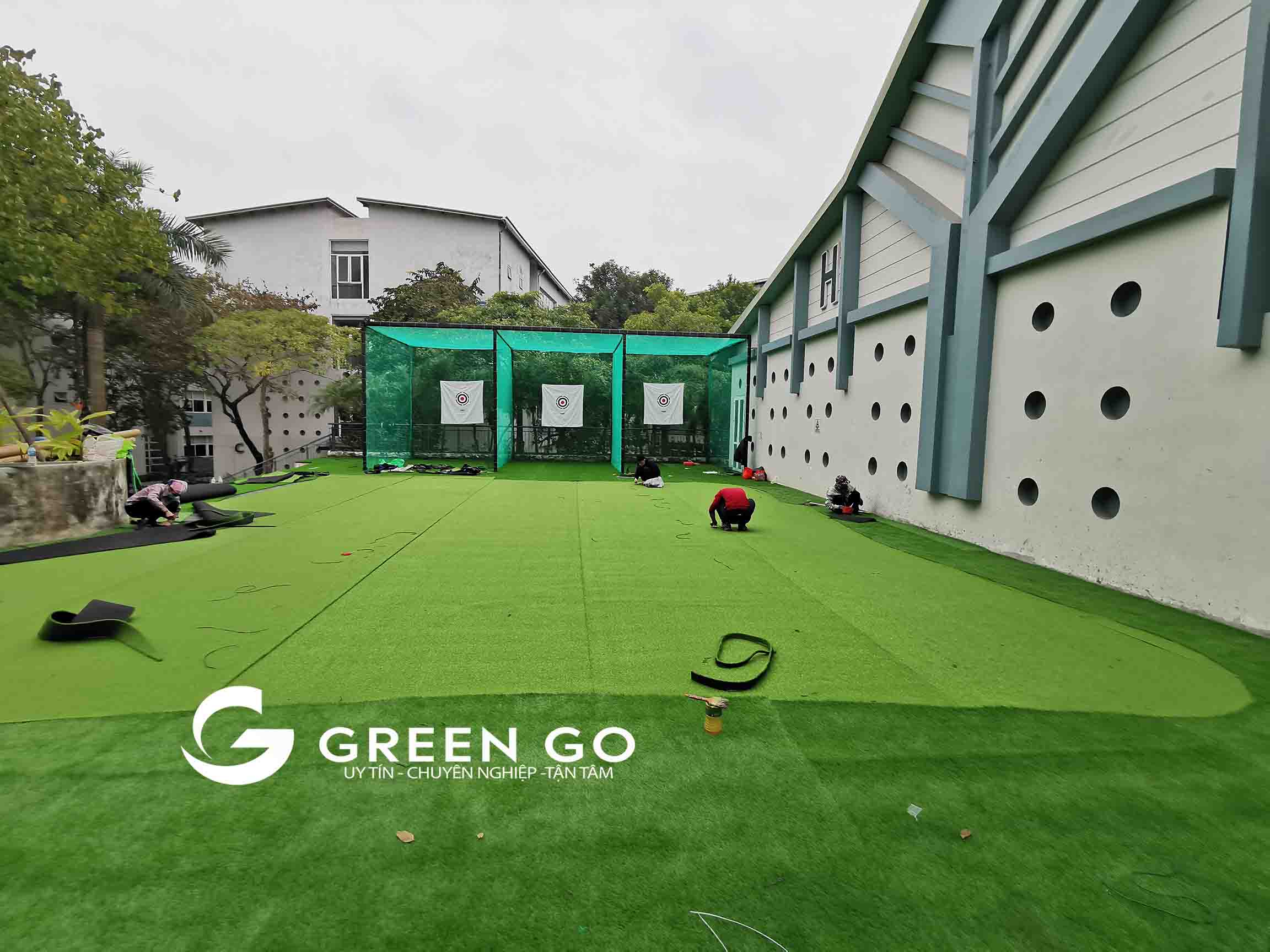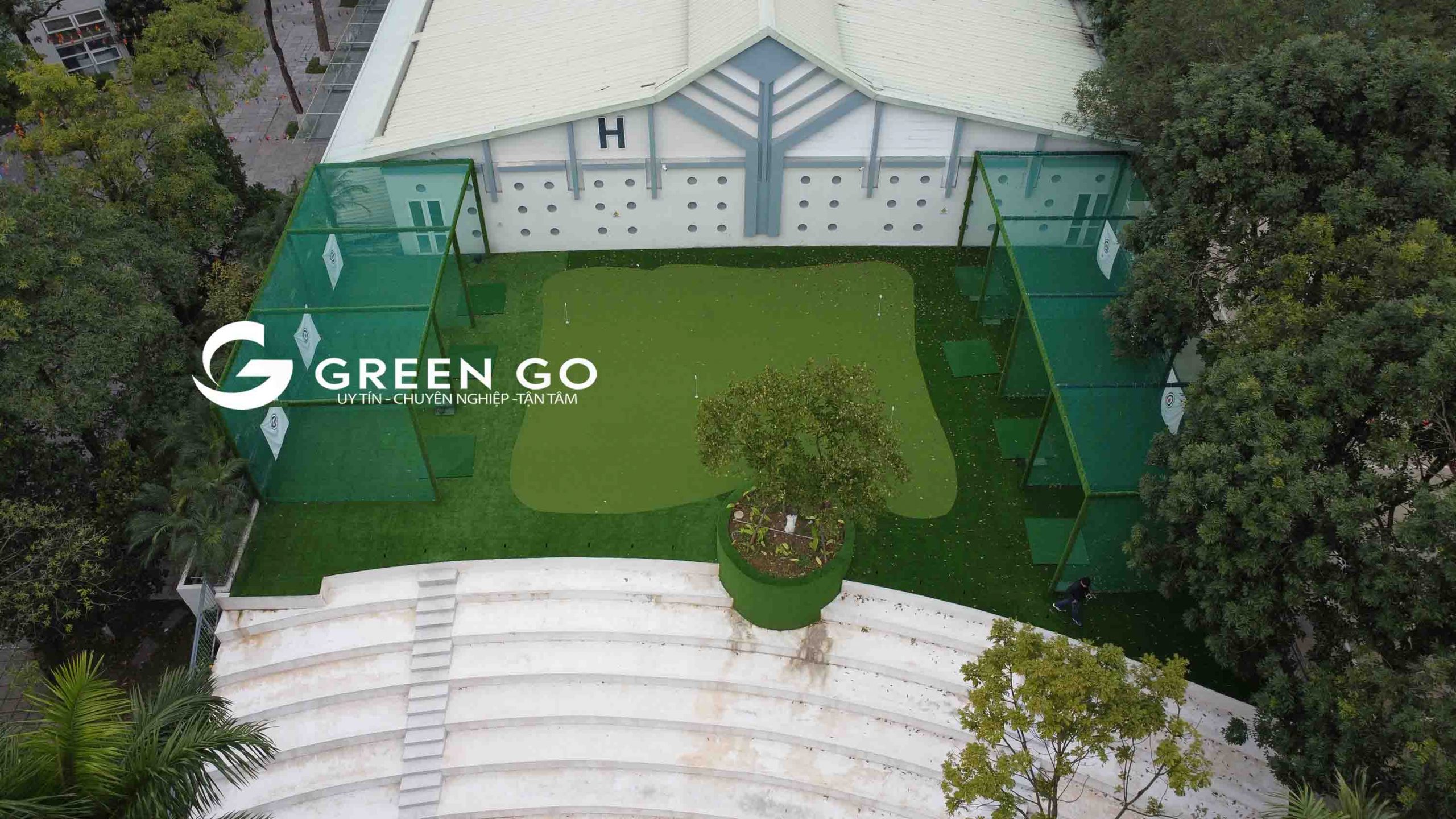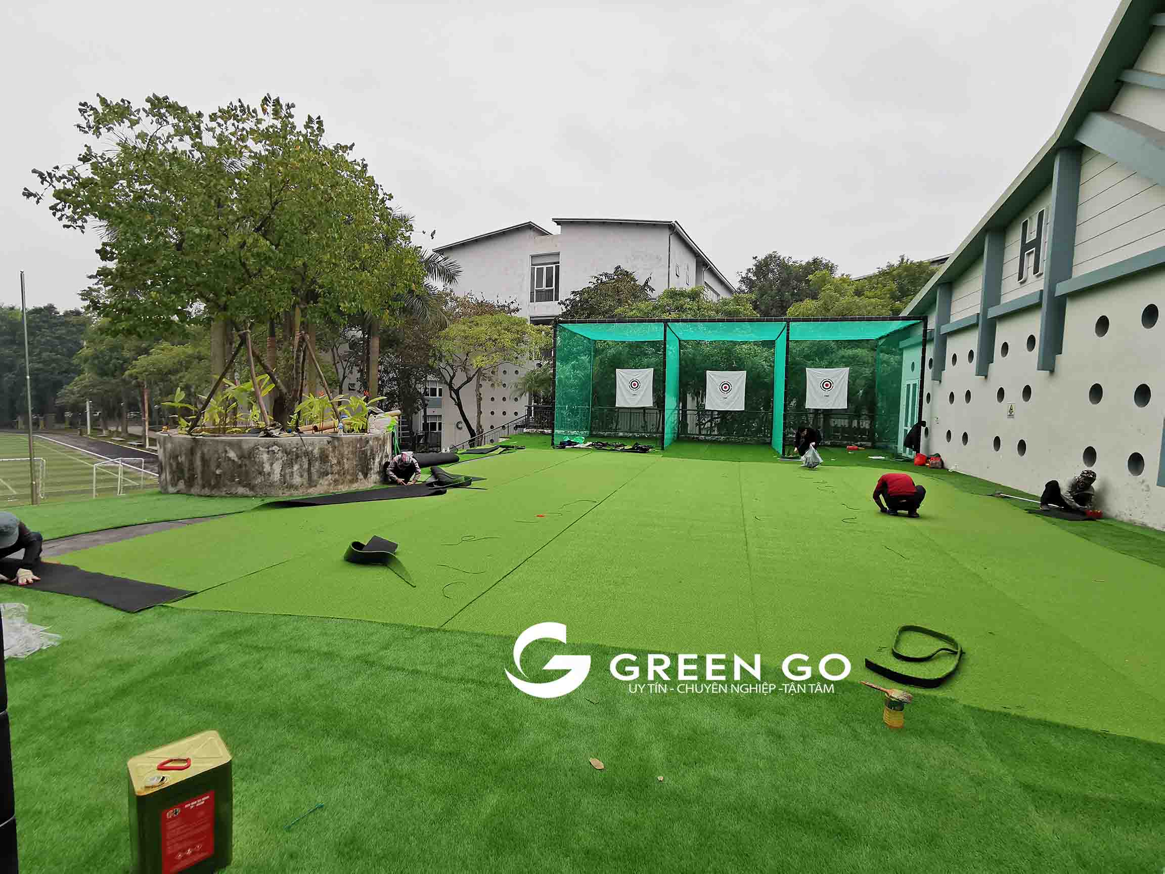 Sân golf trường học được xây dựng với cỏ nhân tạo chất lượng cao để đảm bảo độ bền và sự thoải mái khi chơi golf.