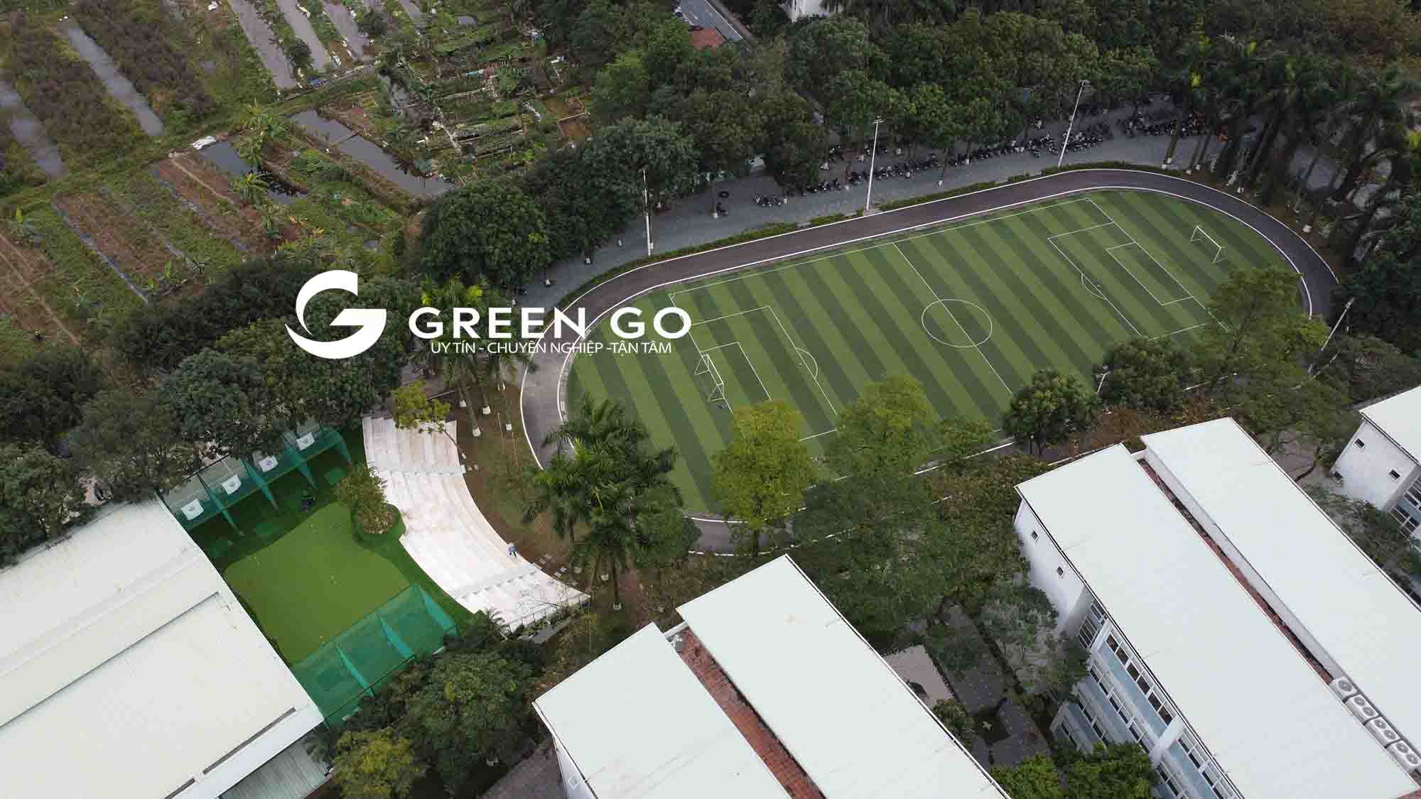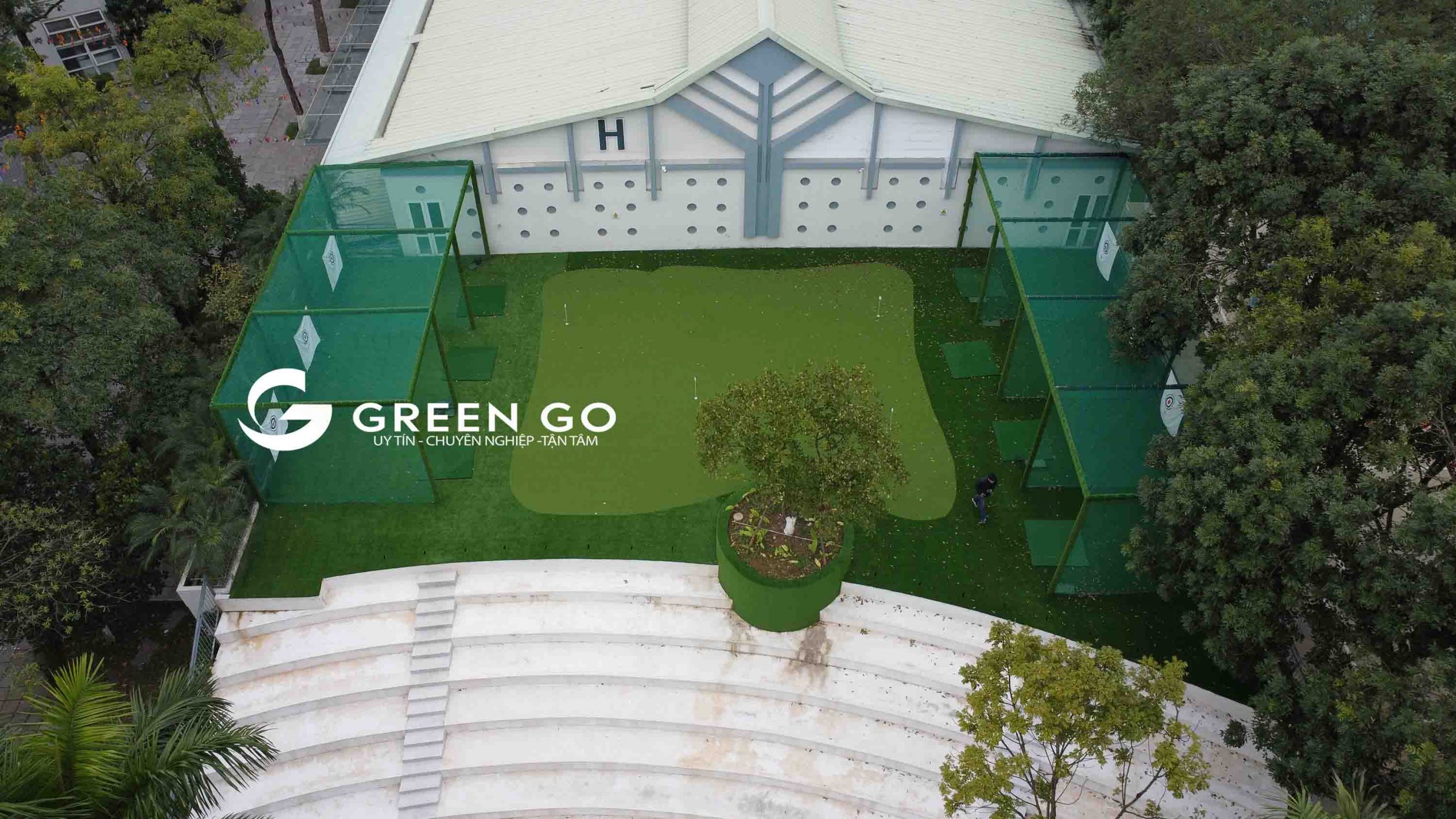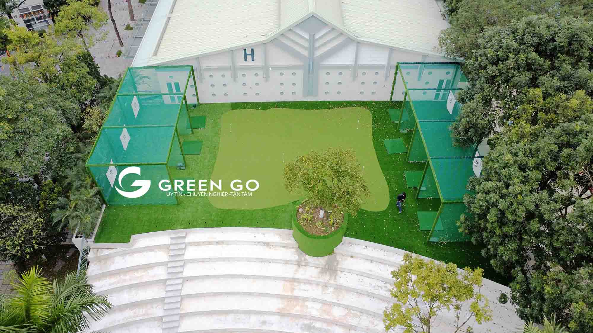 Sân golf trường học được xây dựng với cỏ nhân tạo chất lượng cao để đảm bảo độ bền và sự thoải mái khi chơi golf.
