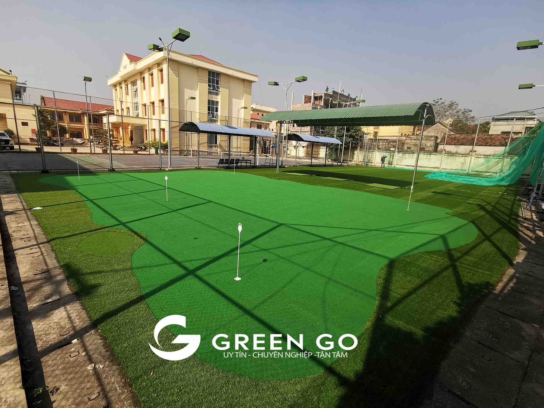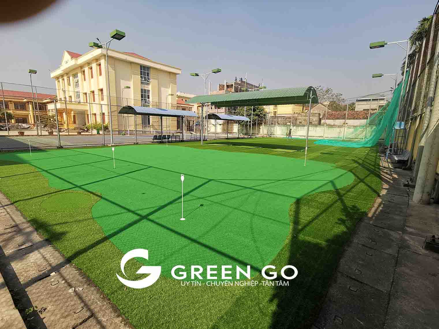 Sân golf được thiết kế với cỏ nhân tạo chất lượng cao, đảm bảo sự thoải mái và độ bền cao khi chơi golf.